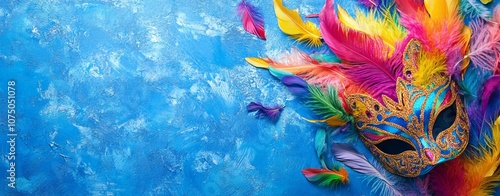 Vibrant Mardi Gras Background with Colorful Feathers and Mask. AI generated illustration