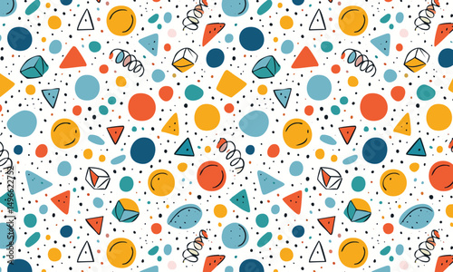 Vibrant Memphis Pattern with Lines Dots Shape Seamless Abstract Geometric Background