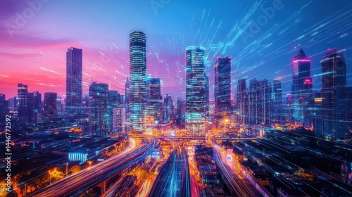 Vibrant Metropolis: A Symphony of Lights and Data Streams
