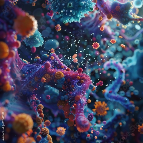 Vibrant Microbiome A Colorful Microscopic World of Microbes and Bacteria