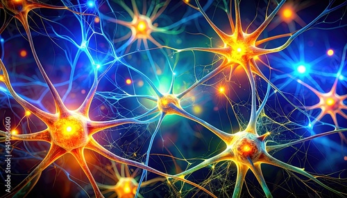 Vibrant Microscopic Image of Interconnected Neurons Network Abstract Brain Cell Structure