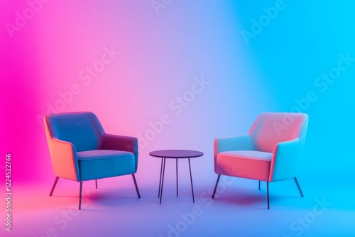 Vibrant Modern Interior with Colorful Chairs and Minimalist Table
