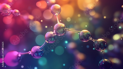 Vibrant molecular structure with colorful patterns, abstract art and science background