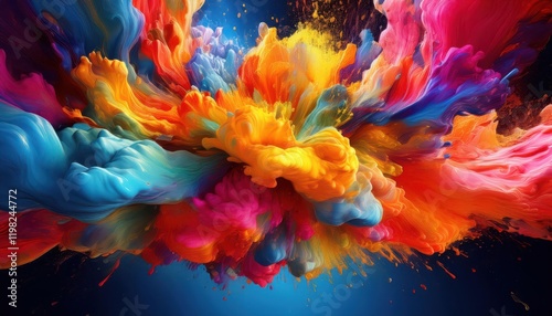 Vibrant Multicolor Paint Explosion Elevates Artistic Energy in the Air, Showcasing a Palette of Striking Hues and Textures.