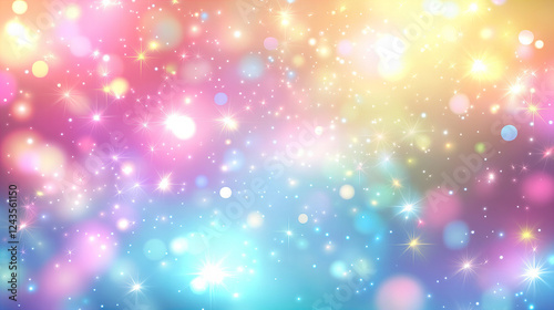 Vibrant multicolored blurred background with bokeh lights, pastel tones, and sparkles, perfect for celebrations, holidays, and creative designs