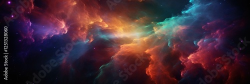 Vibrant Multicolored Cosmic Nebula Art in Deep Space With Swirling Clouds of Colorful Gas and Stars in a Stunning Galactic Scene