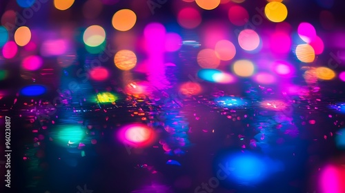 Vibrant Multicolored Disco Light Beams Reflecting on Shiny Surface for Festive Party Setting