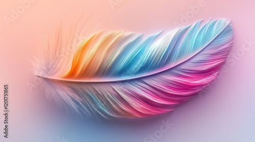 Vibrant Multicolored Feather on Soft Gradient Background Showcasing Delicate Texture and Ethereal Beauty