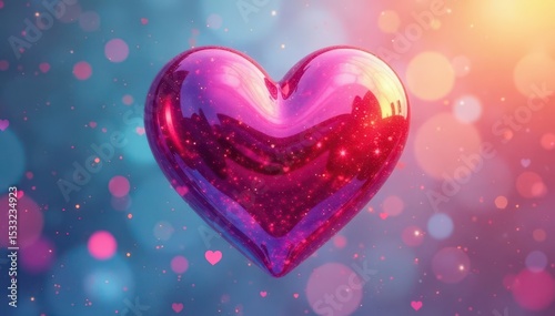 Vibrant multicolored heart shape, glossy texture, romantic, abstract