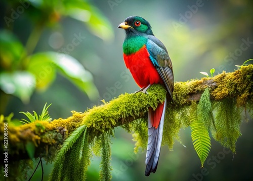 Vibrant Narina Trogon Bird in Lush Rainforest Habitat