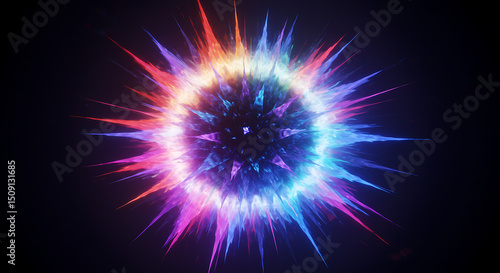 Vibrant Neon Explosion Colorful Abstract Energy Burst Psychedelic Light Rays Digital Art Background