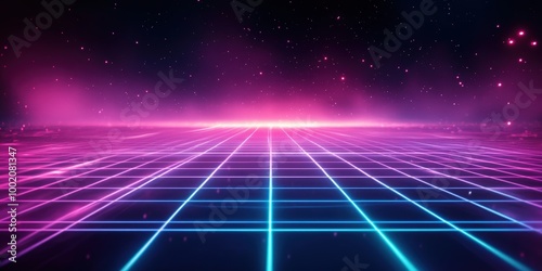 Vibrant Neon Grid Background with Glowing Lines