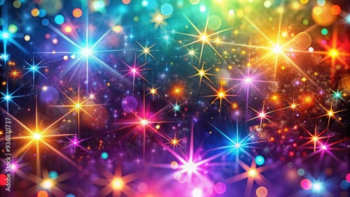 Vibrant neon hues dance across a dark background, surrounded by a kaleidoscope of twinkling sparkles, creating a mesmerizing and festive atmosphere.