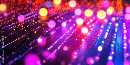 Vibrant neon light circuit patterns in a digital matrix, futuristic glowing technology, abstract cyberspace"