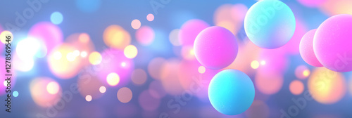 Vibrant neon polka-dot pattern drifting in a zero-gravity environment, each circle shining with a