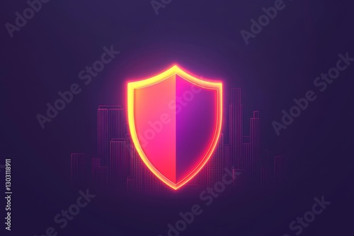 Vibrant neon shield graphic digital design security concept modern environment abstract viewpoint