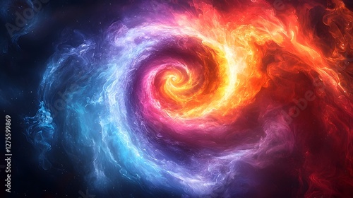 Vibrant Neon Spiral of Radiant Energy Trails in Cosmic Background