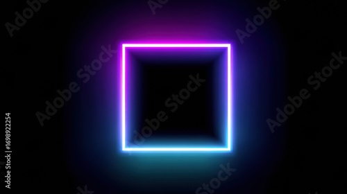 Vibrant Neon Square Glowing in Dark Space With Purple and Blue Hues Creating a Modern Artistic Effect