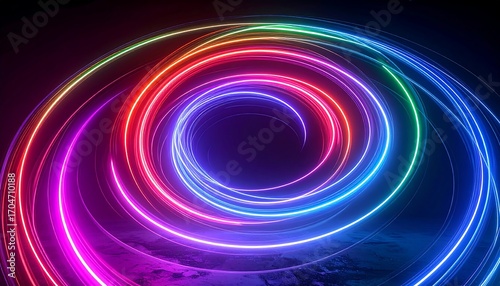 Vibrant Neon Swirl Abstract Background with Rainbow Colors.