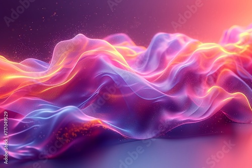 Vibrant neon wave in fluid 3D motion, iridescent. Set against a holographic, abstract colorful background. Realistic HD effect.
