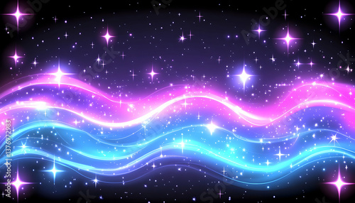 Vibrant neon waves and sparkling stars on a dark background AI generative