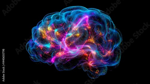 Vibrant neural connections in illuminated brain on black background