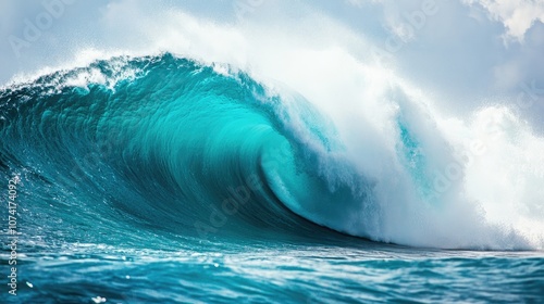 Vibrant Ocean Waves Crashing in Daylight Under a Blue Sky Generative AI