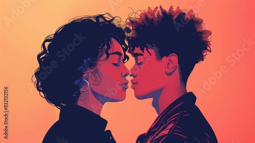 Vibrant of an Transgender Couple Embracing and Expressing Their Love and Identity in a Studio Setting This Conceptual Colorful Artwork Celebrates Diversity Inclusion and the Beauty of Authentic Self