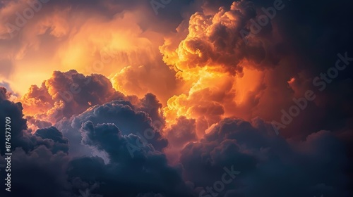 Vibrant orange and dark grey clouds clash in the sky, creating a dramatic and mesmerizing contrast, reminiscent of a powerful, awe-inspiring natural event.