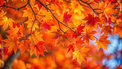 Vibrant orange and red autumn leaves on a tree , fall, foliage, seasonal, environment, nature, vibrant, colorful, tree