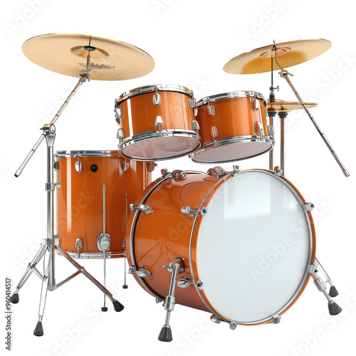 Vibrant orange drum set with cymbals, ideal for music enthusiasts and studio settings, adding energy to any performance.