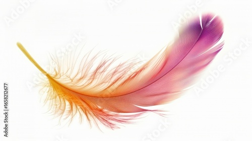Vibrant Orange Feather with Gradient Colors Isolated on White Background