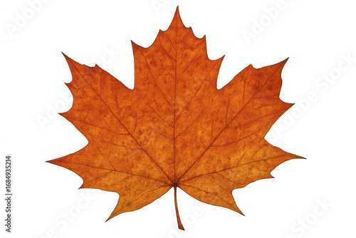 Vibrant orange maple leaf closeup, highlighting autumn foliage detail against transparent backdrop