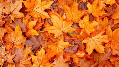 Vibrant orange maple leaves blanket the ground, creating a stunning autumn backdrop that captures natures beauty.