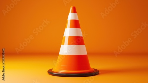 Vibrant Orange Traffic Cone on Bright Orange Background for Safety
