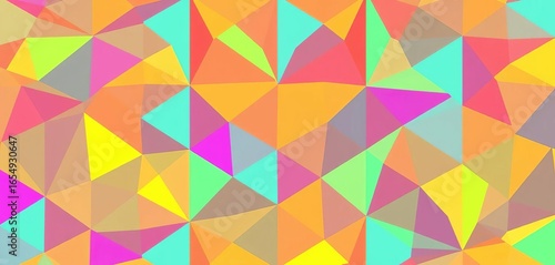 Vibrant, overlapping rainbow triangles forming a seamless geometric pattern, triangle texture, backdrop