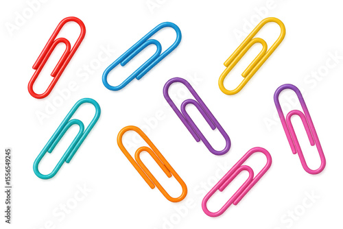 Vibrant paperclips scattered across clear surface, creating organized workspace design element