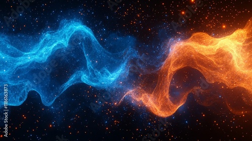 Vibrant particle waves glowing with energy, perfect for technology, science, or digital-themed projects.