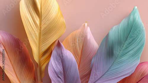 Vibrant pastel leaves with delicate veins arranged in a soft composition abstract