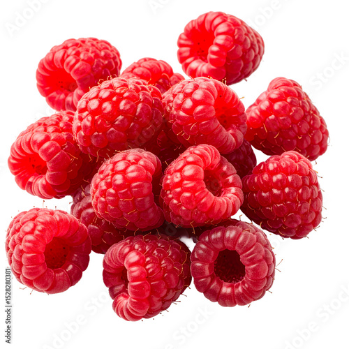 Vibrant pile of crimson raspberries stacked artfully against simplicity on the transparent background