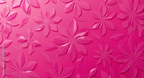 Vibrant Pink 3D Floral Pattern Background Glossy Textured Flowers and Leaves Design