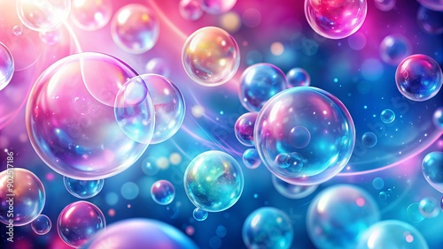 Vibrant pink and blue abstract background filled with delicate transparent soap bubbles floating effortlessly, adding a touch of whimsy and magic to any design.