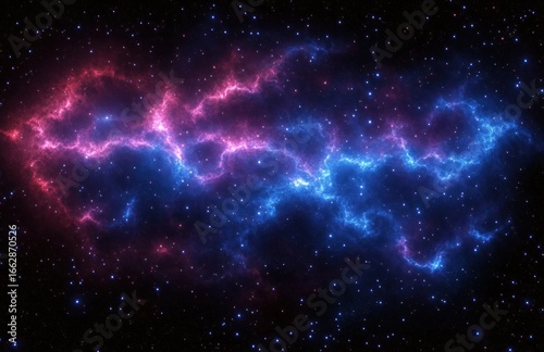 Vibrant pink and blue nebula cloud glowing brightly with scattered stars in deep space creating a cosmic and awe-inspiring scene