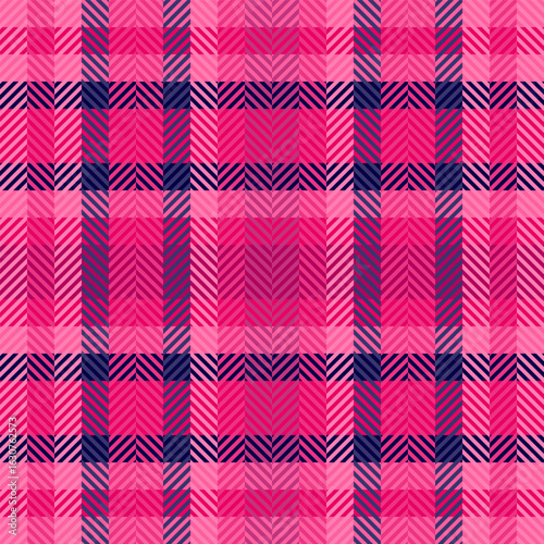 Vibrant pink and navy herringbone plaid pattern. Perfect for textile design, fashion, branding, or website backgrounds.