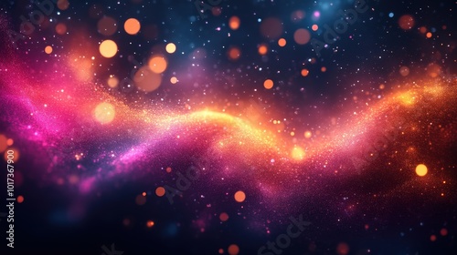 Vibrant Pink And Orange Particle Explosion With Bokeh Effects Creating A Cosmic And Festive Abstract Background