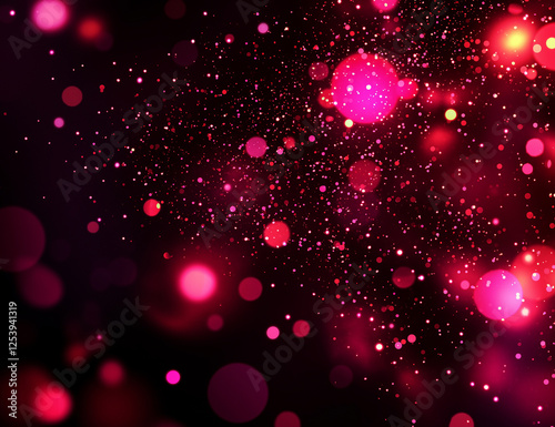 Vibrant pink and red glittery background with sparkling bokeh effects, creating dreamy and festive atmosphere. Perfect for celebrations and artistic designs
