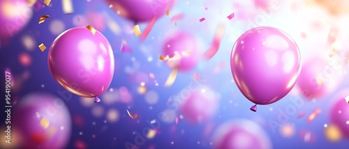 Vibrant pink balloons float against a colorful backdrop, enhancing a festive atmosphere filled with joy and celebration.