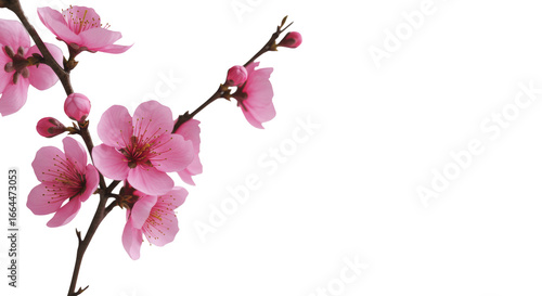Vibrant pink cherry blossom clusters with detailed petals and buds in sharp focus against a soft, blurred minimalist background hinting at wellness, Concept of renewal and growth