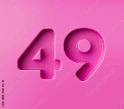 Vibrant pink number 49 Forty nine embossed on a pink background, 3d illustration