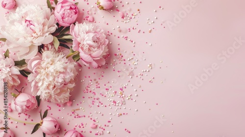Vibrant Pink Peonies Flat Lay Background for Spring Designs Generative AI